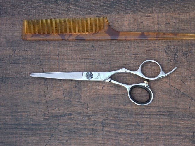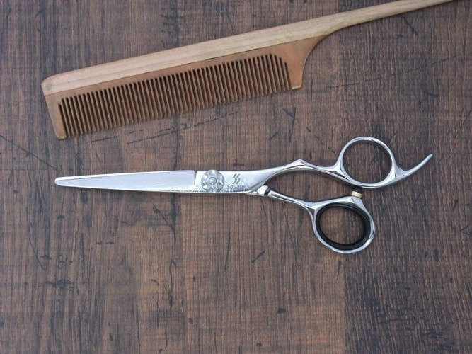 10層からなるダマスカス模様が美しいシザーです。