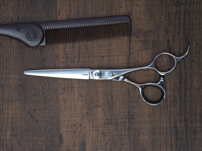 仕上げ用のシザーです。小指掛けカット、曲げが可能です。